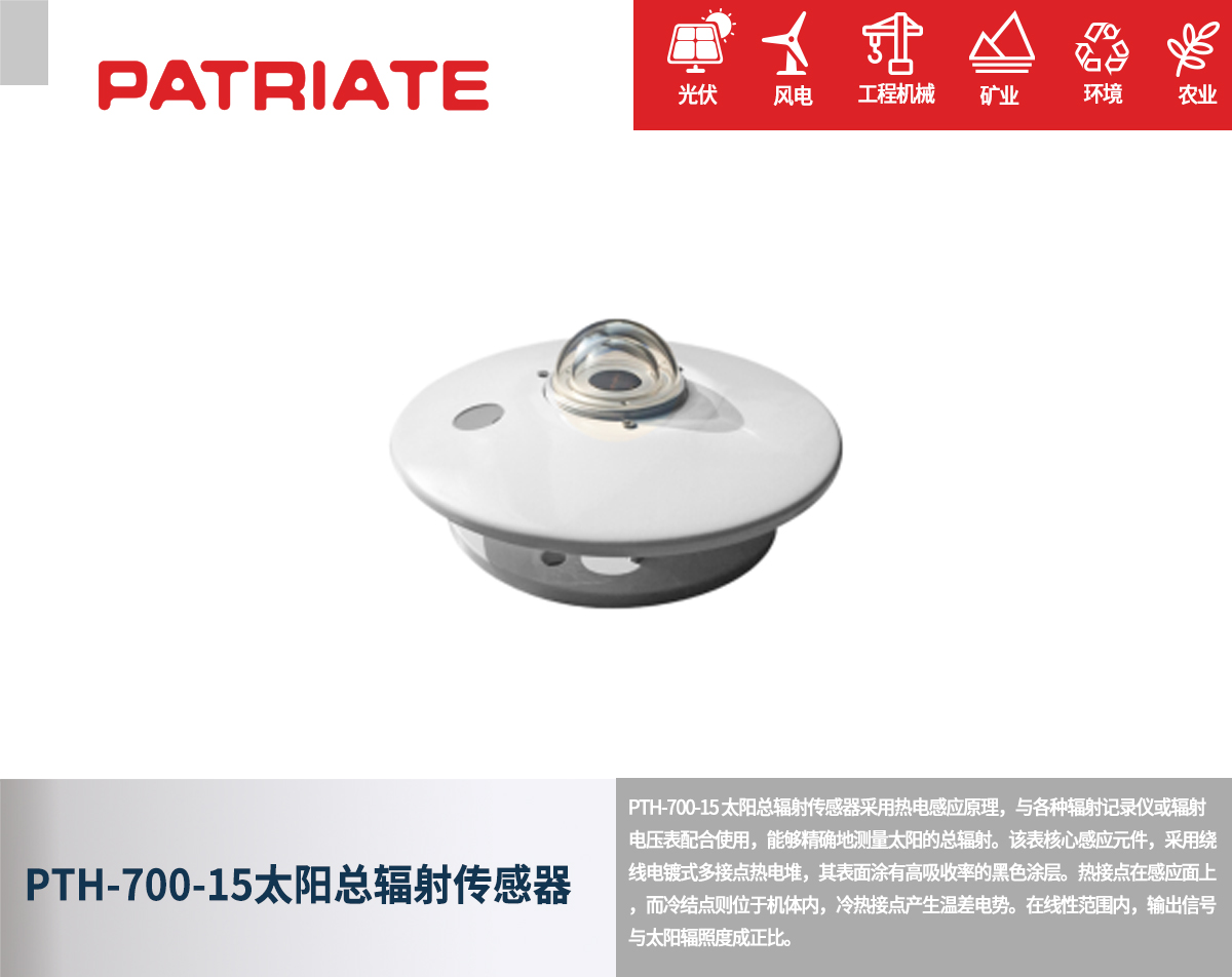 在追求清潔能源高效利用的道路上,太陽輻射能量的精確測量至關(guān)重要。今天,為大家?guī)硪豢罟夥娬镜?“陽光參謀”——PTH-700-15 總輻射傳感器,它以卓越的性能助力各行業(yè)精準把控太陽輻射能量。